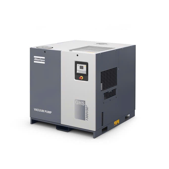 Bơm chân không Atlas Copco dòng GHS là loại bơm trục vít xoay ngâm dầu, tích hợp công nghệ biến tần (VSD) giúp tiết kiệm năng lượng tối đa, mang lại hiệu suất cao và thân thiện với môi trường. Dòng sản phẩm này nổi bật với khả năng tiết kiệm năng lượng vượt trội, thiết kế "cắm điện và chạy" dễ lắp đặt, vỏ máy cách âm giảm tiếng ồn, và khả năng hoạt động đáng tin cậy nhờ thiết kế cách ly nhiệt độc đáo.